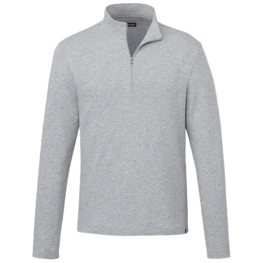 Elevate Men’s Heather Grey Rigi Eco Knit Quarter Zip with custom logo is an easy to wear option for the corporate office, park, and everywhere in between. The simple, eco-friendly quarter zip is easy to layer over a tank or tee for a comfortable look when the weather is unpredictable. Choose your embroidery and place an order today.