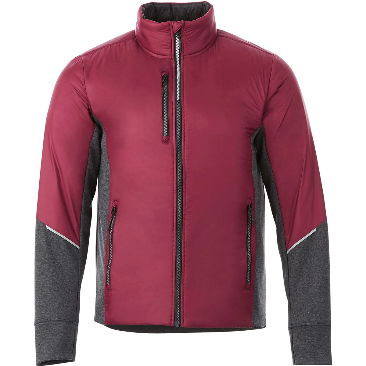 The Elevate Men’s Maroon/Heather Dark Charcoal Fernie Hybrid Insulated Jacket is ideal when cold weather sets in. Handsomely designed with contoured cuffs and thumb exits, this water repellent jacket can carry your custom logo proudly. Imagine the impression a custom embroidered logo will leave for those who set eyes upon this stunning jacket! Perfect for an early morning or evening run with reflective details. This vest would be perfectfor employee apparel, especially when staying in shape is part of the company’s mission. Minimum ordering is necessary, but these would make the perfect corporate gift for any occasion. Choose yours today!
