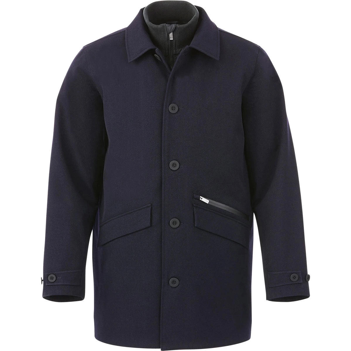 Class and style meet with the Elevate Men’s Navy Rivington Insulated Jacket. Created with skill this waterproof, yet breathable jacket can be customized with your embroidered corporate logo. Perfect cold weather apparel that would look great out on the town or walking into the board room. The contrast inner rib knit storm collar keeps you warm, while the back vent allows for air flow. A great corporate gift as this insulated jacket can be stored in the attached backpack that has interior carrying straps. Easy to use and easy to wear, an ideal combination for your place of employment.