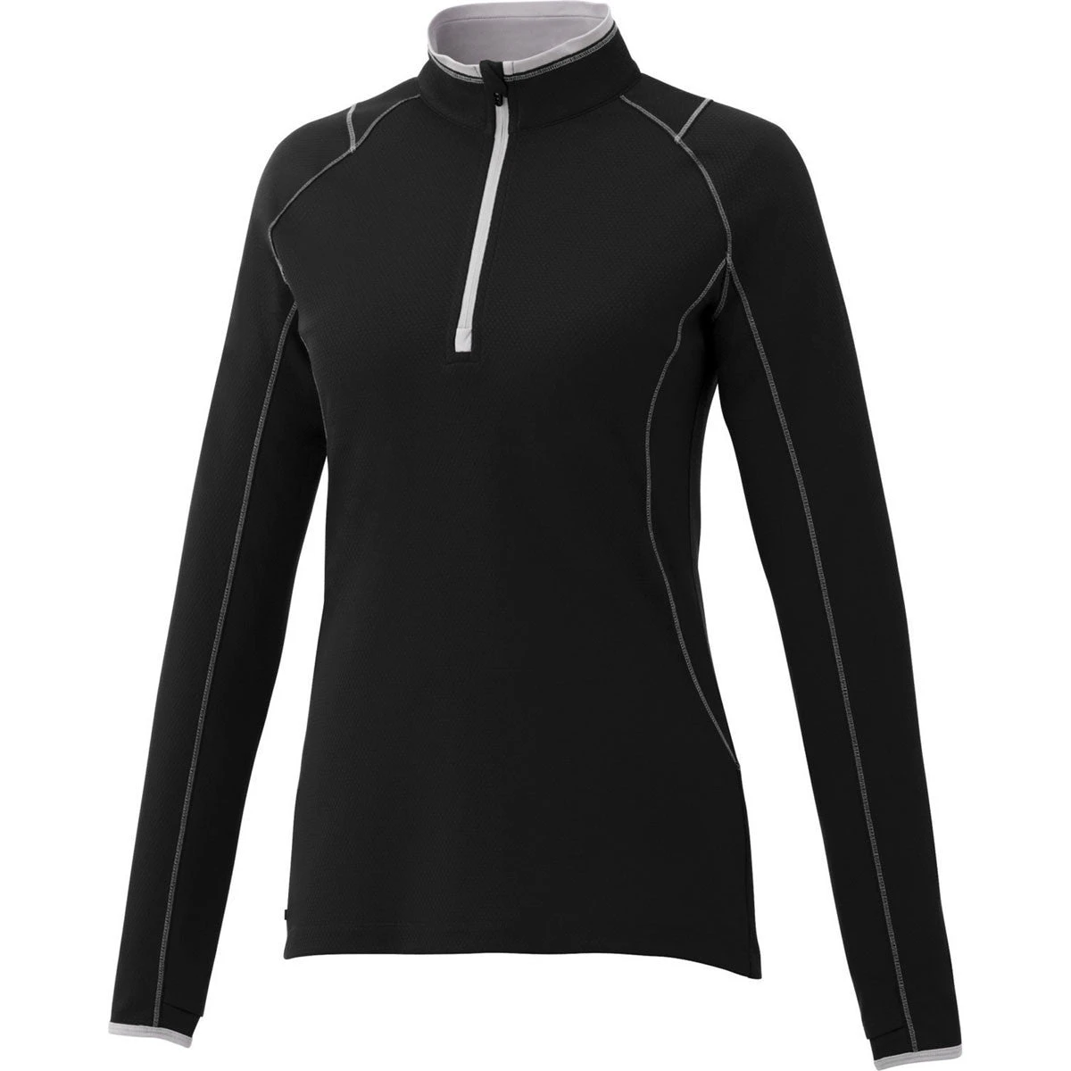 When you want to go from indoors to outdoors to indoors back again, there are few items more versatile than the quarter zip. But the Elevate Women’s Black Knew Knit Half Zip you see here is not just another item on the rack. It’s comfortable, thanks to the quality of the fabric, and it’s flexible enough to be worn in a variety of situations. And when you add on your custom logo to that prospect, you see how this quarter zip can function just as well as a company uniform, a promotional item, or even simply a good thing to keep around the office.