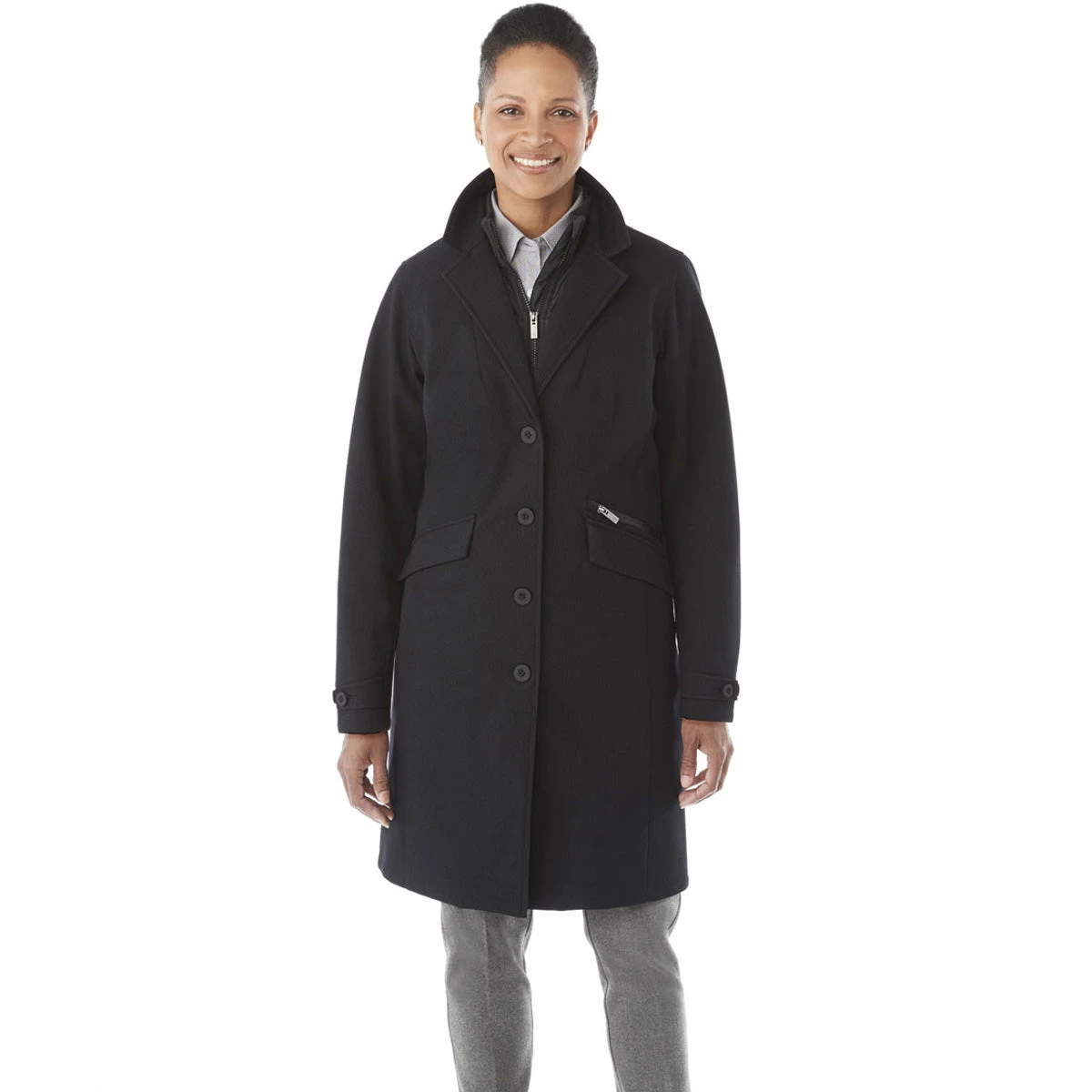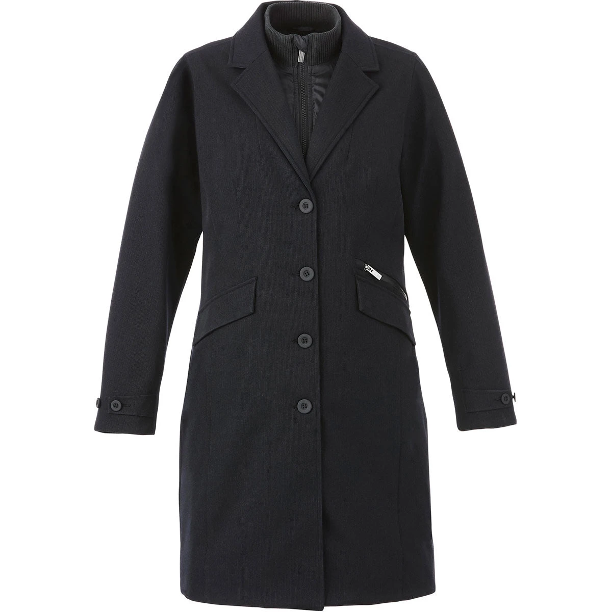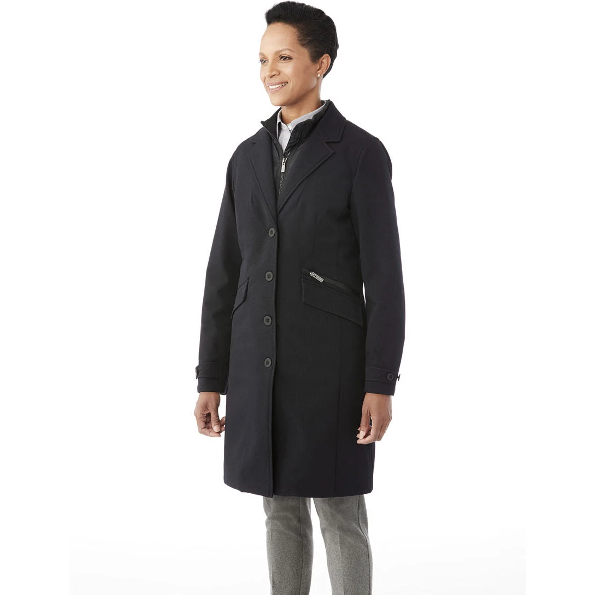 Tailored elegance can be found in the Elevate Women’s Black Rivington Insulated Jacket. This self-storing insulated jacket comes with interior backpack straps making it an easy choice for employee apparel or as a corporate gift. Available in a variety of sizes, this waterproof, breathable jacket will fit perfectly for those who need to venture out into the cold weather. Add a custom logo with embroidery as a form of advertisement and business promotion. There is no better way to show the pride and class your business displays! Order yours today, as an employee gift!