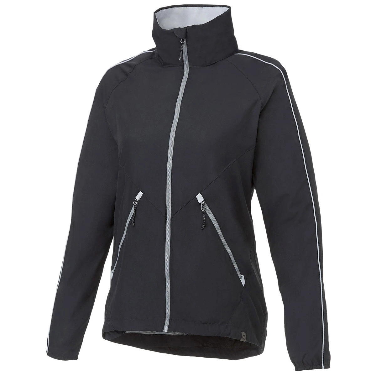 Create a custom look with the Elevate Women’s Black/Silver Rincon Eco Packable Jacket with embroidery to match your taste and design. The wind and water-resistant jacket is made of partially recycled materials to help the environment while keeping you looking great. Great for hiking, biking, and enjoying the outdoors, this jacket can also carry your company logo to use as employee apparel. The front zip pockets keep small items safe and the stow away hood keeps you protected when nature strikes. Best of all, when you are done wearing this jacket, stow it away in the built-in sack and pop it into a purse or backpack.