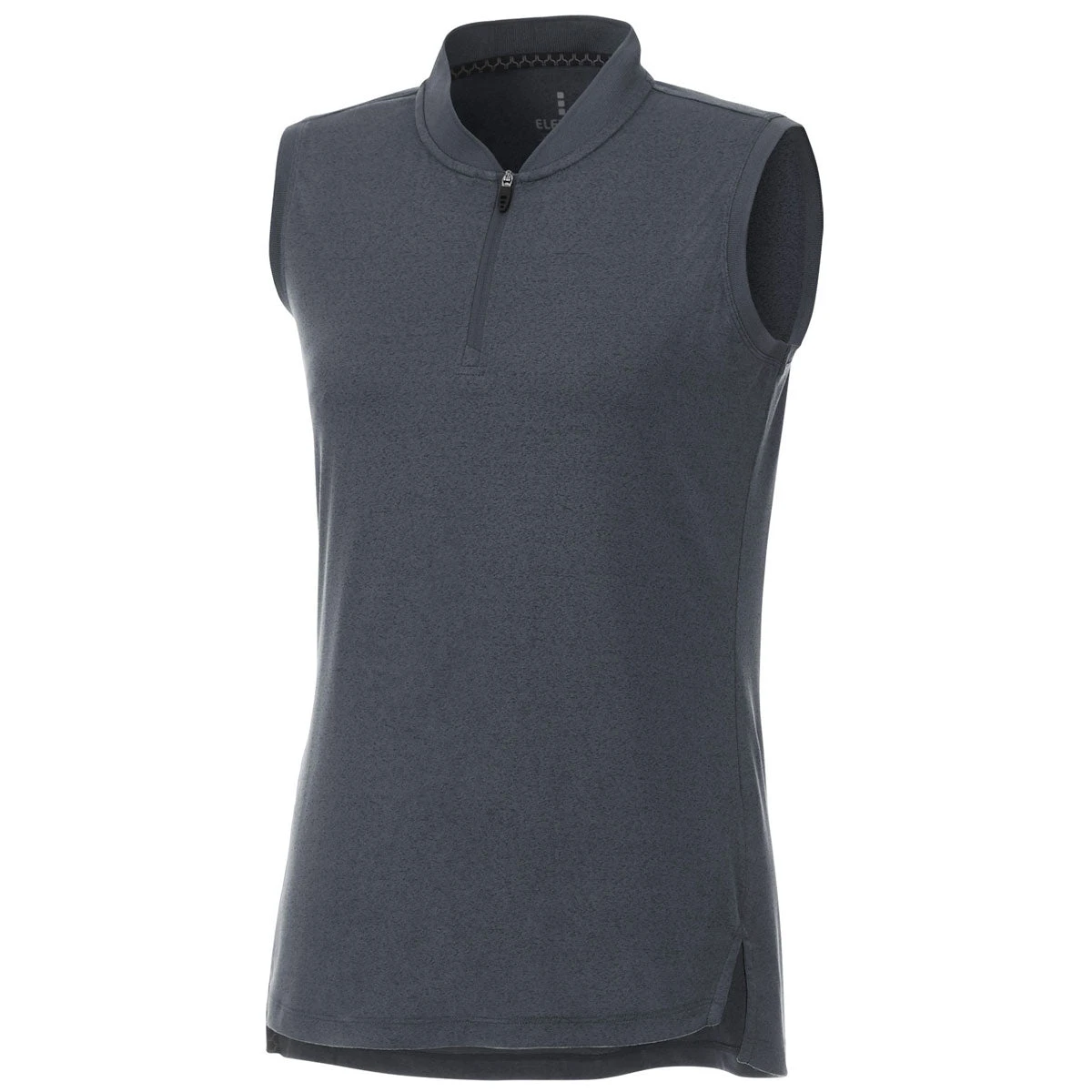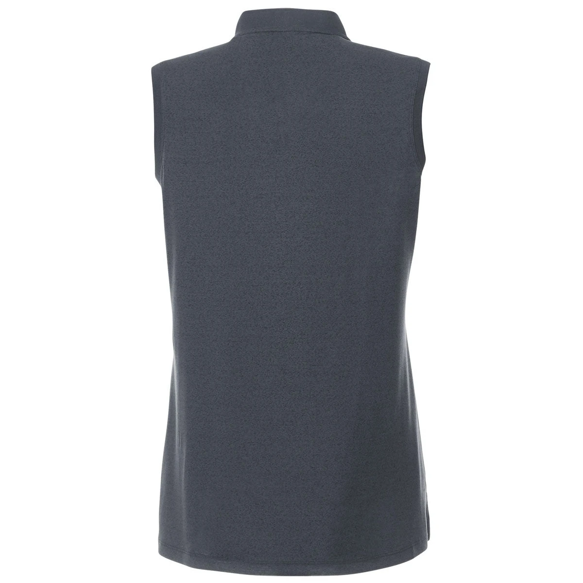Look and keep cool in the custom Elevate Women’s Black Smoke Heather Kinport Sleeveless Polo. This simple, yet gorgeous sleeveless polo is made of 100% micro-polyester heather cooling yarn knit that keeps you cooler with anti-microbial and moisture wicking finish. Made for the active person that still wants to look great, this polo can be dressed up as corporate apparel or worn alone as daily wear. Add a custom logo of your design to build a logoed apparel line or a company logo to use as an employee gift or part of a uniform. The shaped seams, tapered waist and dropped back hem create a great silhouette for the wearer while remaining a work appropriate look.