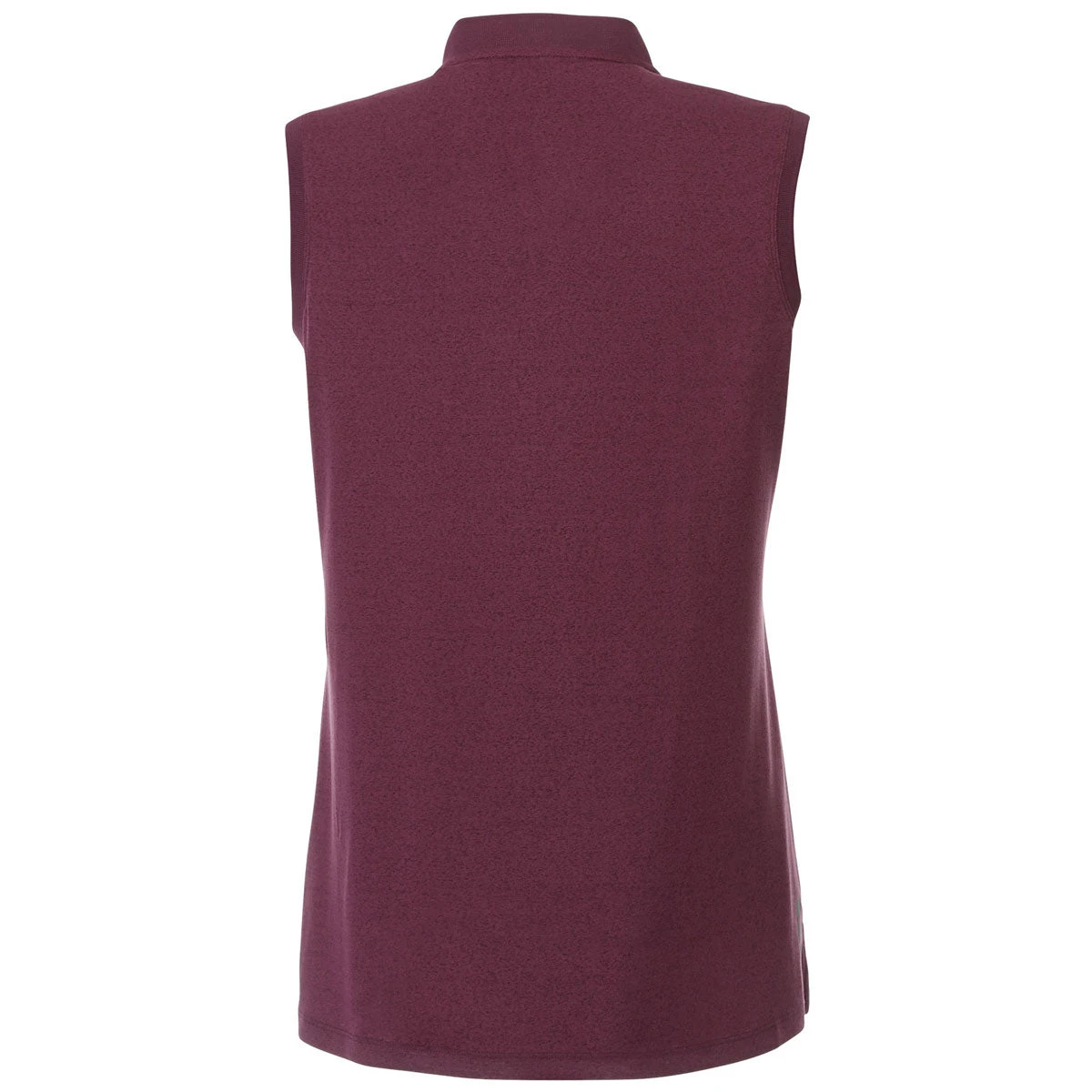 Look and keep cool in the custom Elevate Women’s Maroon Heather Kinport Sleeveless Polo. This simple, yet gorgeous sleeveless polo is made of 100% micro-polyester heather cooling yarn knit that keeps you cooler with anti-microbial and moisture wicking finish. Made for the active person that still wants to look great, this polo can be dressed up as corporate apparel or worn alone as daily wear. Add a custom logo of your design to build a logoed apparel line or a company logo to use as an employee gift or part of a uniform. The shaped seams, tapered waist and dropped back hem create a great silhouette for the wearer while remaining a work appropriate look.