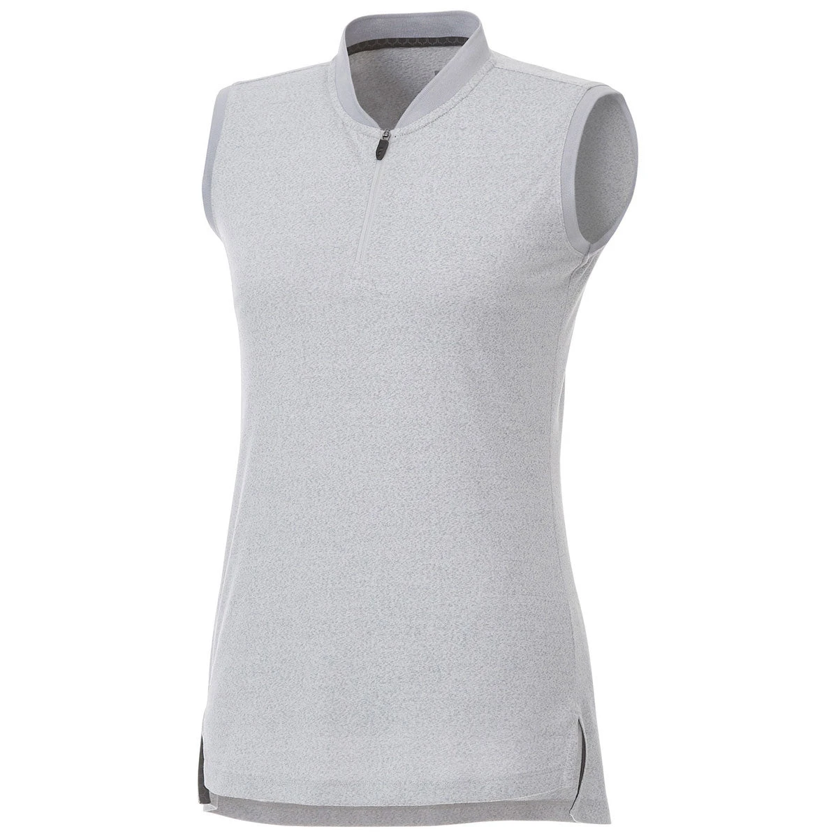 Look and keep cool in the custom Elevate Women’s Silver Heather Kinport Sleeveless Polo. This simple, yet gorgeous sleeveless polo is made of 100% micro-polyester heather cooling yarn knit that keeps you cooler with anti-microbial and moisture wicking finish. Made for the active person that still wants to look great, this polo can be dressed up as corporate apparel or worn alone as daily wear. Add a custom logo of your design to build a logoed apparel line or a company logo to use as an employee gift or part of a uniform. The shaped seams, tapered waist and dropped back hem create a great silhouette for the wearer while remaining a work appropriate look.