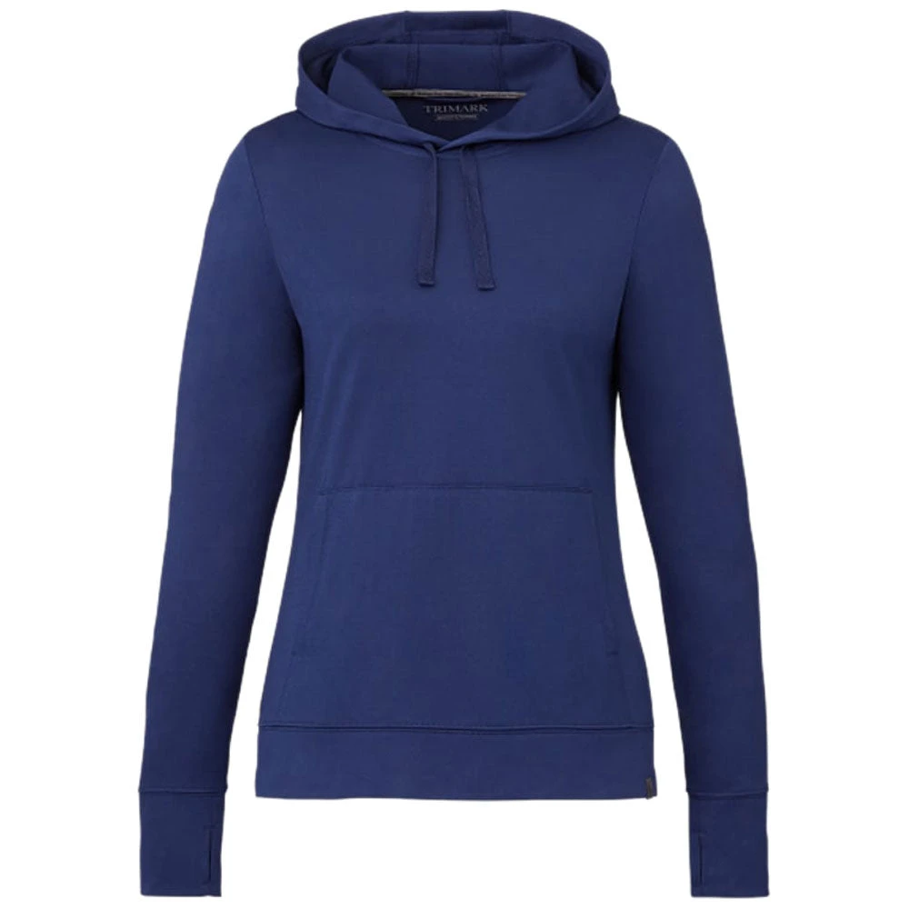 The Elevate Women’s Vintage Navy Lavar Eco Knit Hoody with custom logo is a comfy, recycled polyblend fabric that is great for indoor or outdoor wear. Add a corporate logo to give as gifts to loyal customers, employees, or wear at trade shows to draw attention. The kanga pocket with included media pocket is great for small items that are needed each day. Order today.